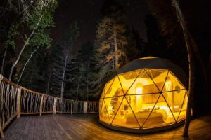 Enquanto você faz o seu churrasco, aproveite a vista do fiorde Saguenay da sua casa na árvore, a oito metros do chão. Para uma experiência mais incomum, esferas suspensas ou uma cúpula futurista também estão disponíveis.